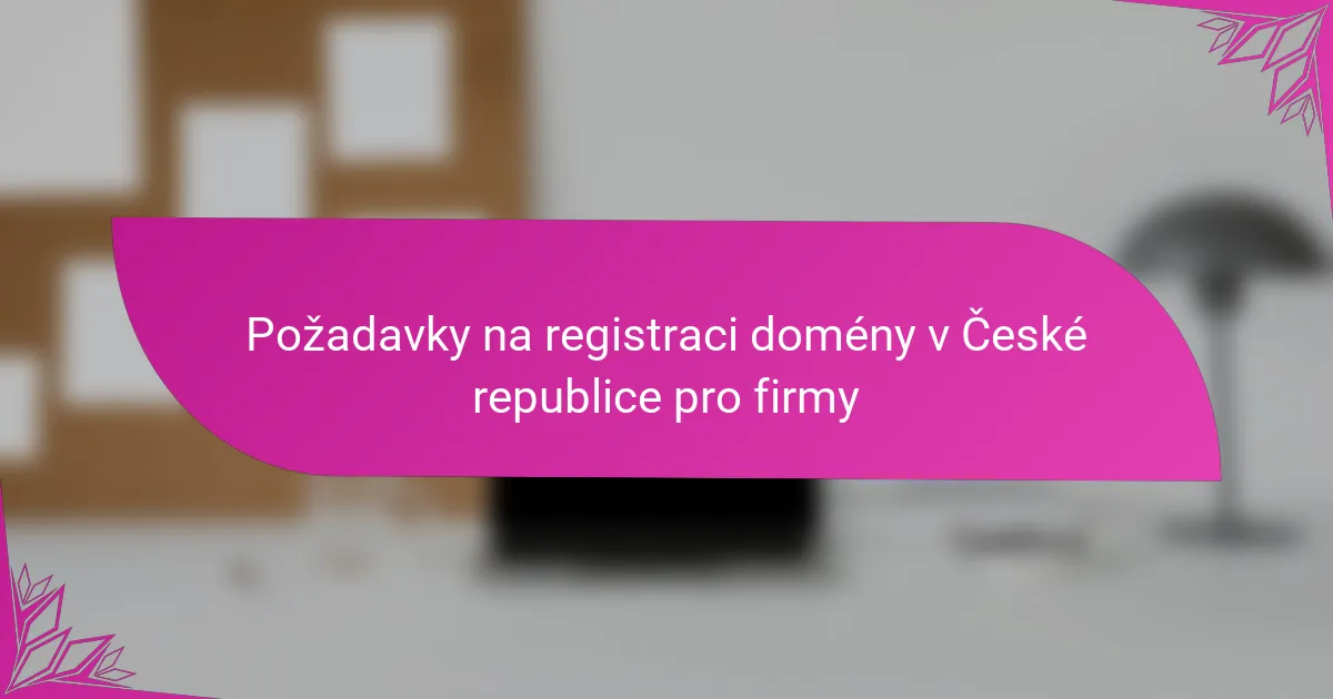 Registrace domény v České republice vyžaduje, aby podniky splnily specifická kritéria, včetně místní přítomnosti a platné identifikace. Dále je nezbytné mít důkaz o registraci firmy a dodržování místních zákonů pro úspěšný registrační proces. Pochopení těchto požadavků a souvisejících nákladů je klíčové pro vytvoření efektivní online přítomnosti v regionu.