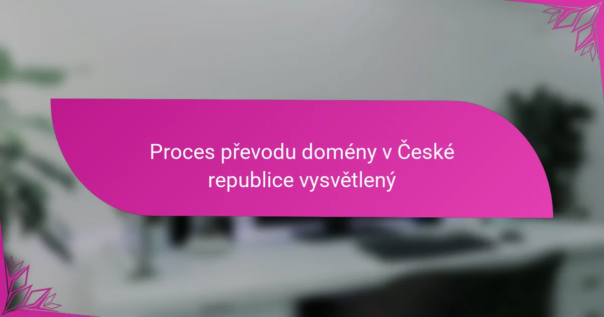 Běžné problémy během převodů domén v České republice zahrnují chyby v autorizačním kódu, komplikace se stavem uzamčení domény a nesprávné kontaktní informace. Rychlé řešení těchto problémů může pomoci zajistit hladký proces převodu.